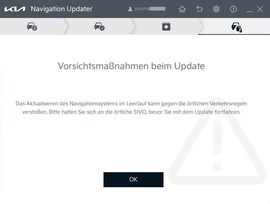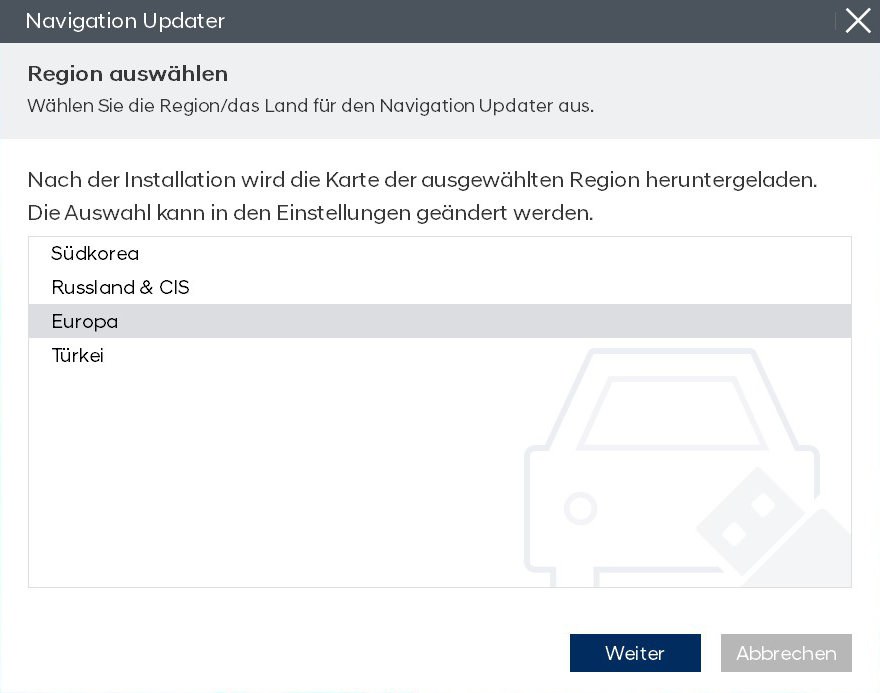 Falls Sie eine Region wählen, die nicht auf den Kaufort Ihres Autos zutrifft und das Update durchführen, kann dies zu einem Ausfall oder Defekt an Ihrem Infotainment Systems führen.