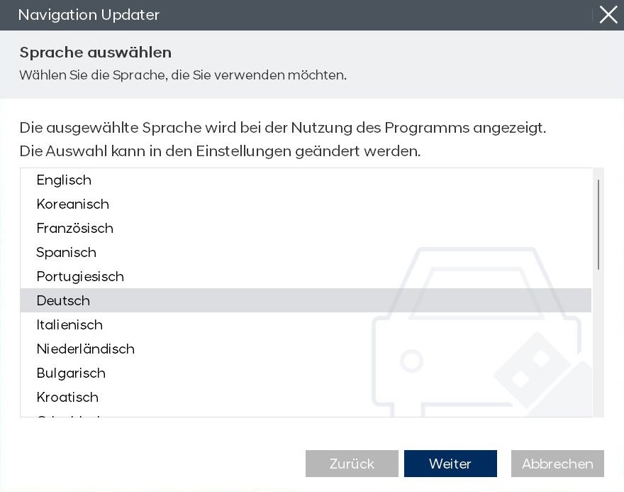 Nach der erfolgreichen Installation von ”Navigation Updater”, startet das Programm und man wird automatisch mit den Server angemeldet.