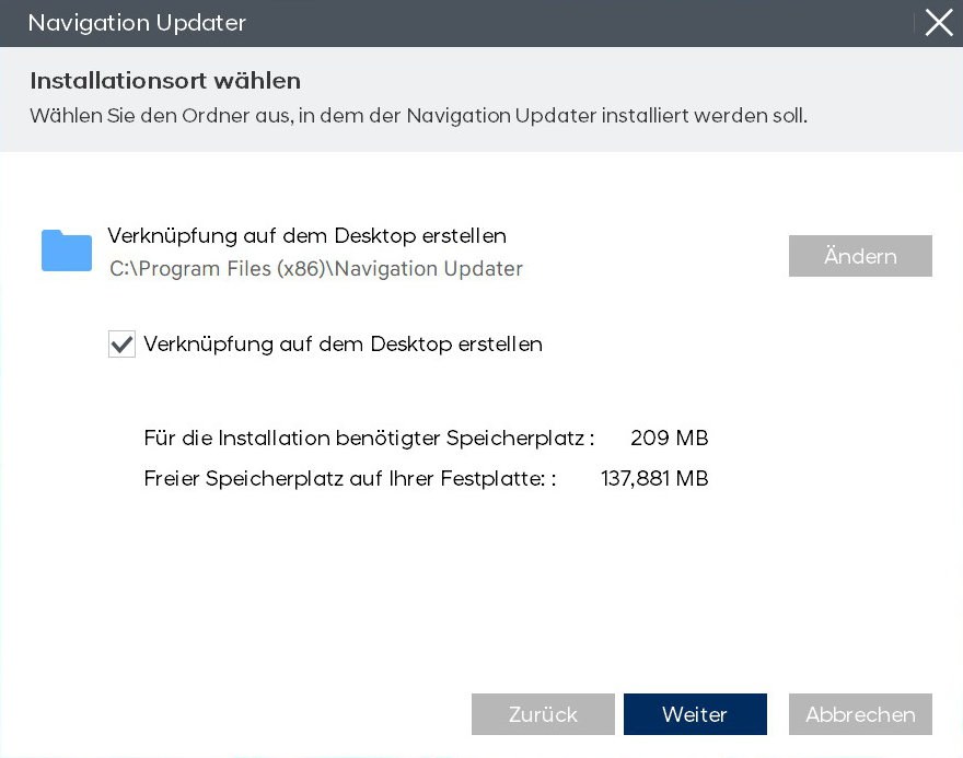 PS: Das Programm „Navigation Updater” muss weiterhin auf dem PC installiert sein.