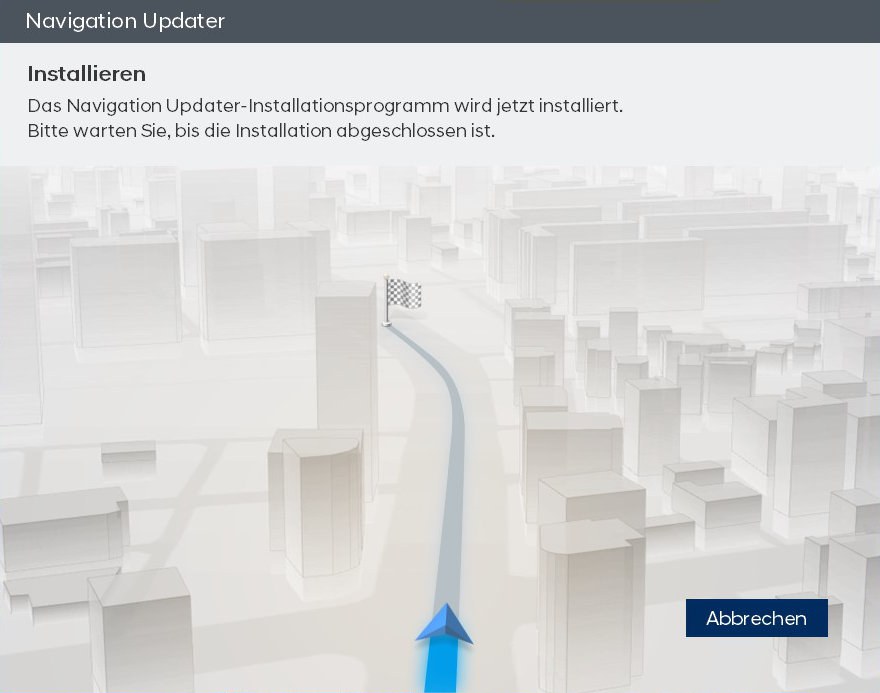Der Vorgang kann zwischen 10 - 60 Minuten dauern, das Navi wird sich in diesem Zeitraum mehrmals neu starten.