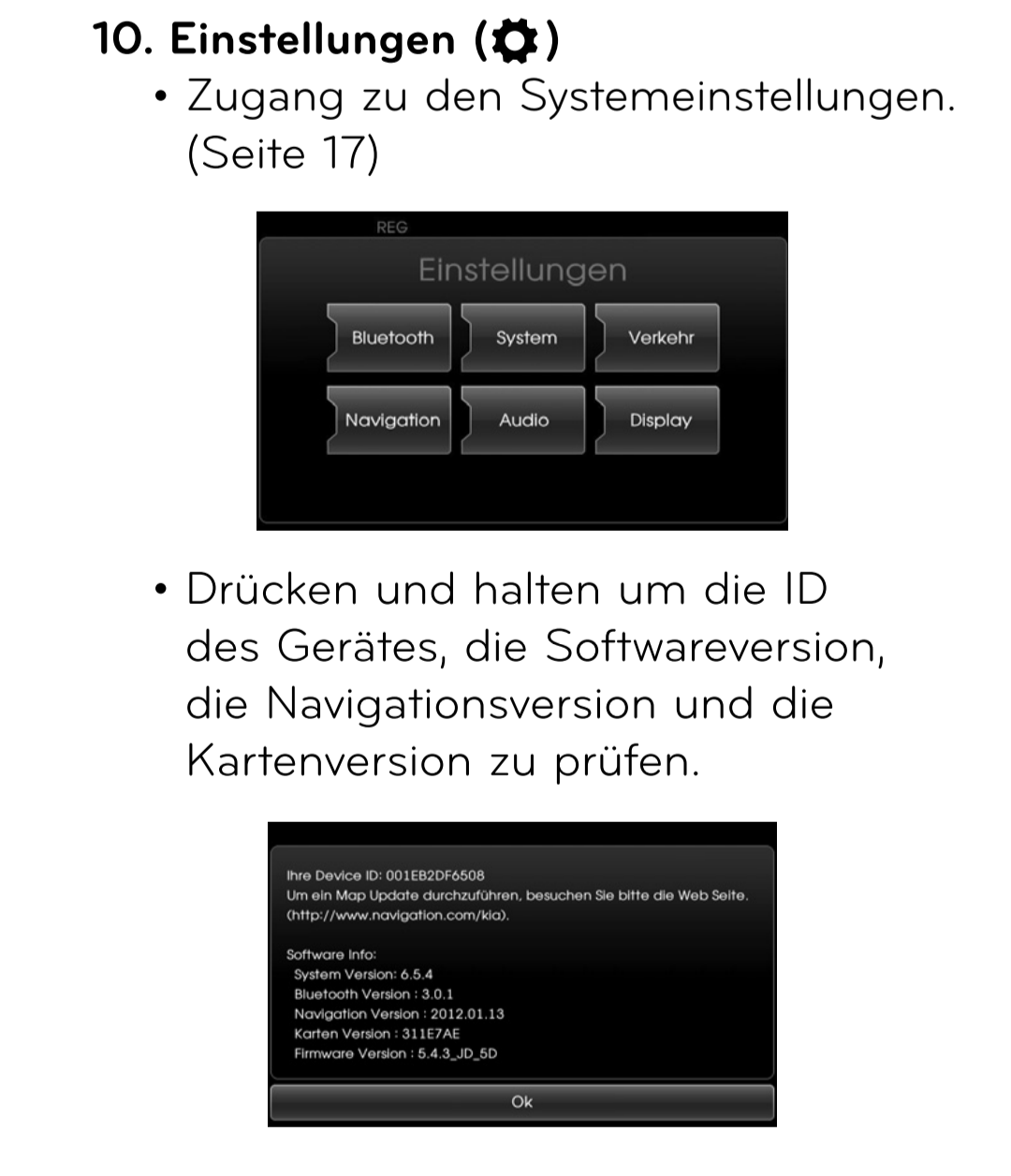 Die aktuelle Version kannst du dir beim Gen1/Gen2 Navi anzeigen lassen, indem du die Einstellung-(Zahnrad) Taste länger gedrückt hältst.