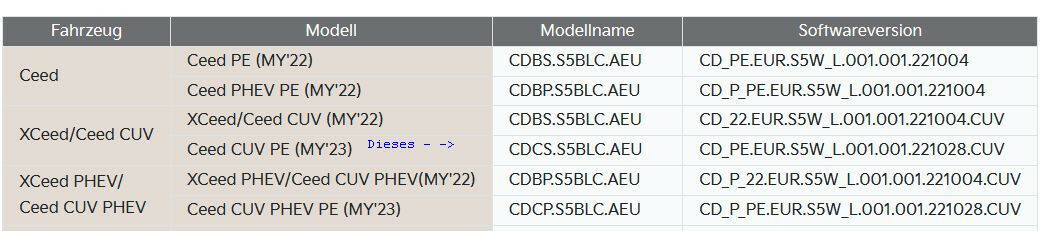 Geräte die (bei den Ceed-Modellen) mit diesem Update versorgt werden
