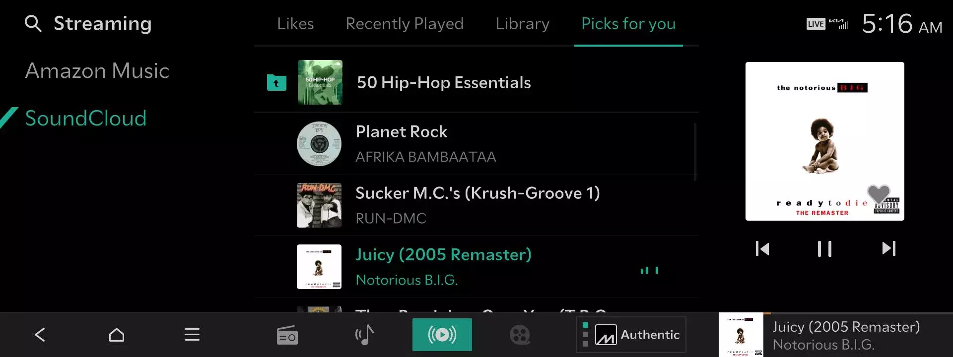 (Um SoundCloud mithilfe der Modus-Taste am Lenkrad zu wählen, muss SoundCloud in den Einstellungen der Modus-Taste aktiviert sein.