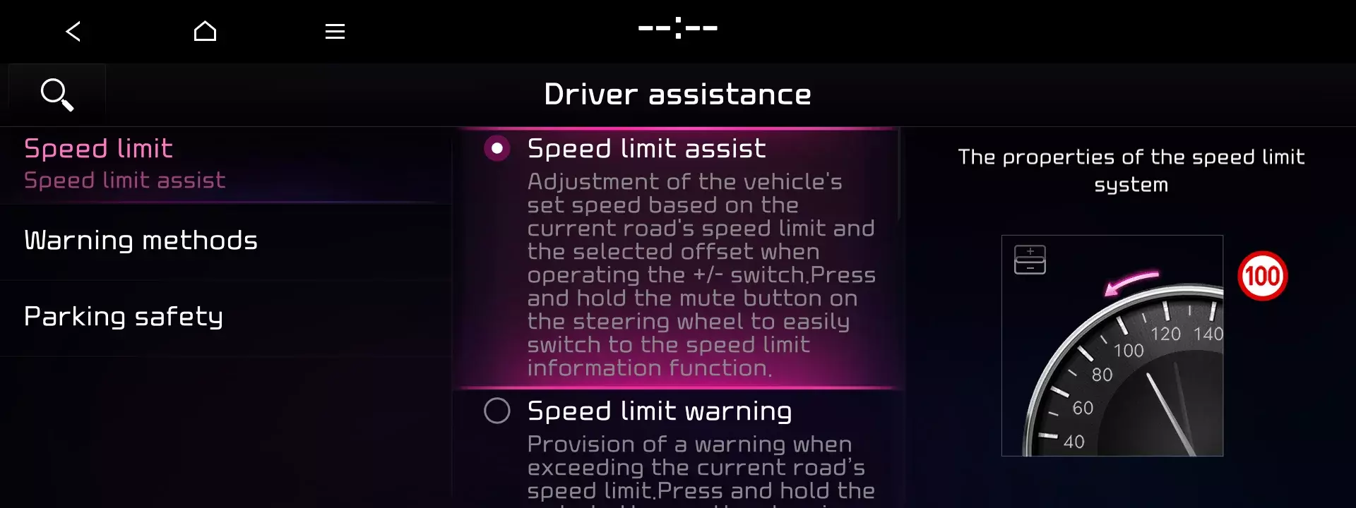 - Bitte beachten Sie: Bei jedem Fahrzeugstart wird die Einstellung auf [Tempolimitwarnung] zurückgesetzt, die eine akustische Warnung ausgibt.
