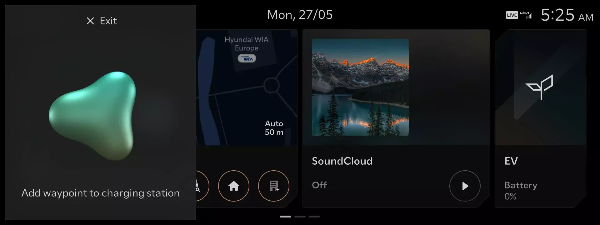 Das EV-Menü im Split Screen Bildschirm wurde aktualisiert. Überprüfen Sie mit mithilfe des Split Screens bequem Informationen zu favorisierten, nahegelegenen oder in der Nähe Ihres festgelegten Ziels befindlichen Ladestationen.- Zusätzlich zu Reichweite und Akkustatus zeigt Ihnen das System den Status Ihres Ladestationsfavoriten, die als Ziel festgelegte Ladestation oder eine nahegelegene Ladestation basierend auf Ihrer aktuellen Fahrsituation. Drücken Sie die Taste [Mehr] am unteren Rand des Split Screens, um weitere Details über die angezeigte sowie zusätzliche Ladestationen zu erhalten.